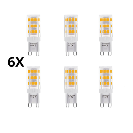 Sæt med 6 G9 LED-pærer – 3-trins, 3W, 250 lm, varm hvid 2700K