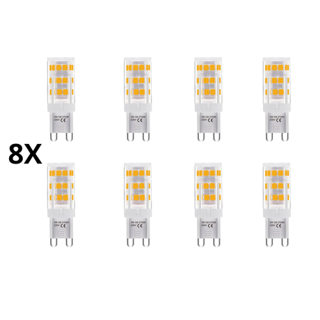 Sæt med 8 G9 LED-pærer – 3-trins, 3W, 250 lm, varm hvid 2700K