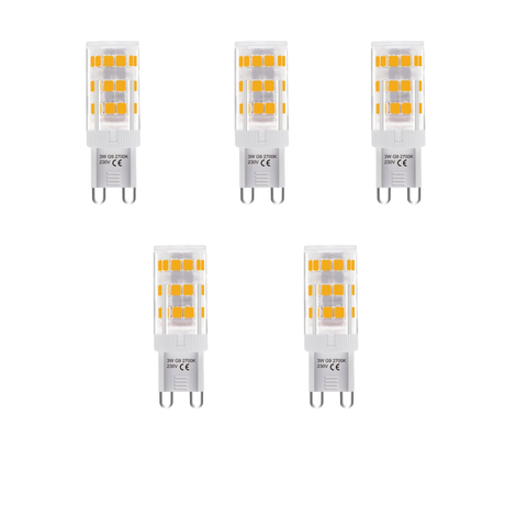 Sæt med 5 G9 LED-pærer – 3-trins, 3W, 250 lm, varm hvid 2700K