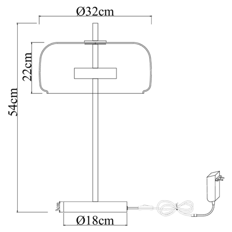 Lune bordlampe - Messing med ravfarvet glas - Integreret lyskilde