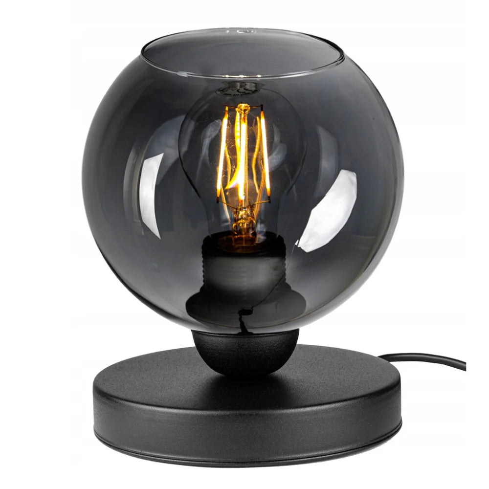 Den industrielle bordlampe 'Smoke' kombinerer en sort base med en røget skærm. Lampen passer ind i både industrielle og moderne interiører og udstråler ro.