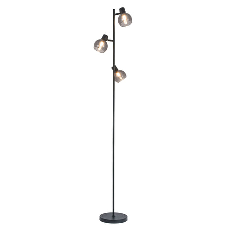 Gulvlampe Fleur - Sort med røgfarvet glas - 3 lys