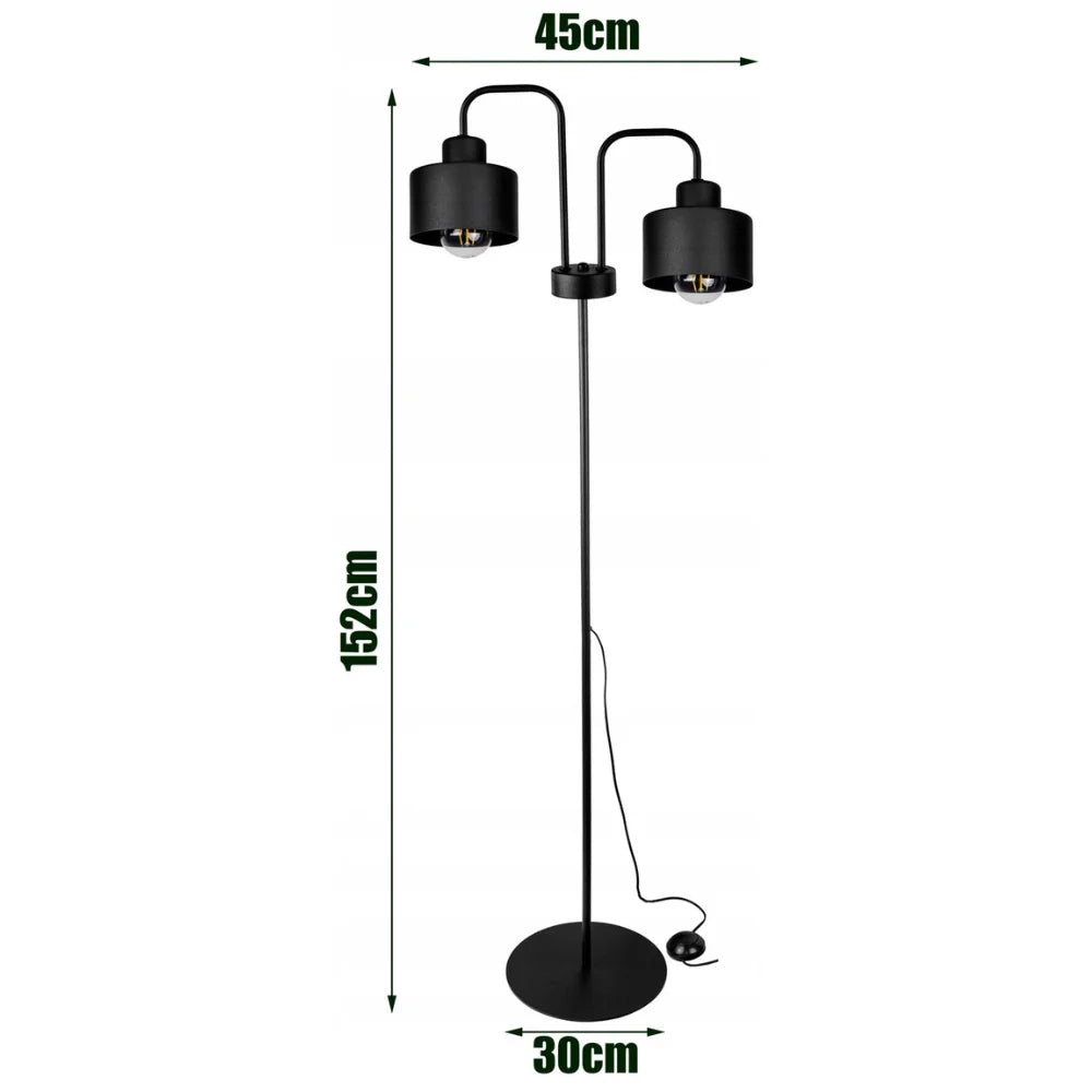 Den industrielle gulvlampe Ambiance med 2 lamper har et raffineret og robust design, der er ideelt til et moderne look. Med to lampeskærme, der giver et varmt og stemningsfuldt lys, skaber denne lampe en hyggelig atmosfære i dit interiør.