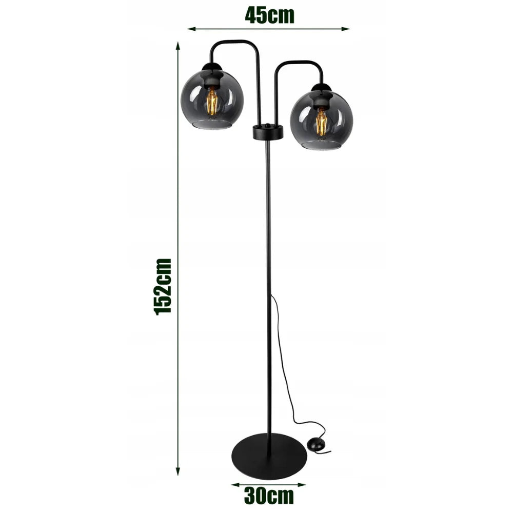Den industrielle Smoke gulvlampe med 2 lamper har et dristigt og moderne design med en diskret røget finish. De to lampeskærme giver et atmosfærisk lys, mens den slanke metalramme giver lampen et robust udseende.