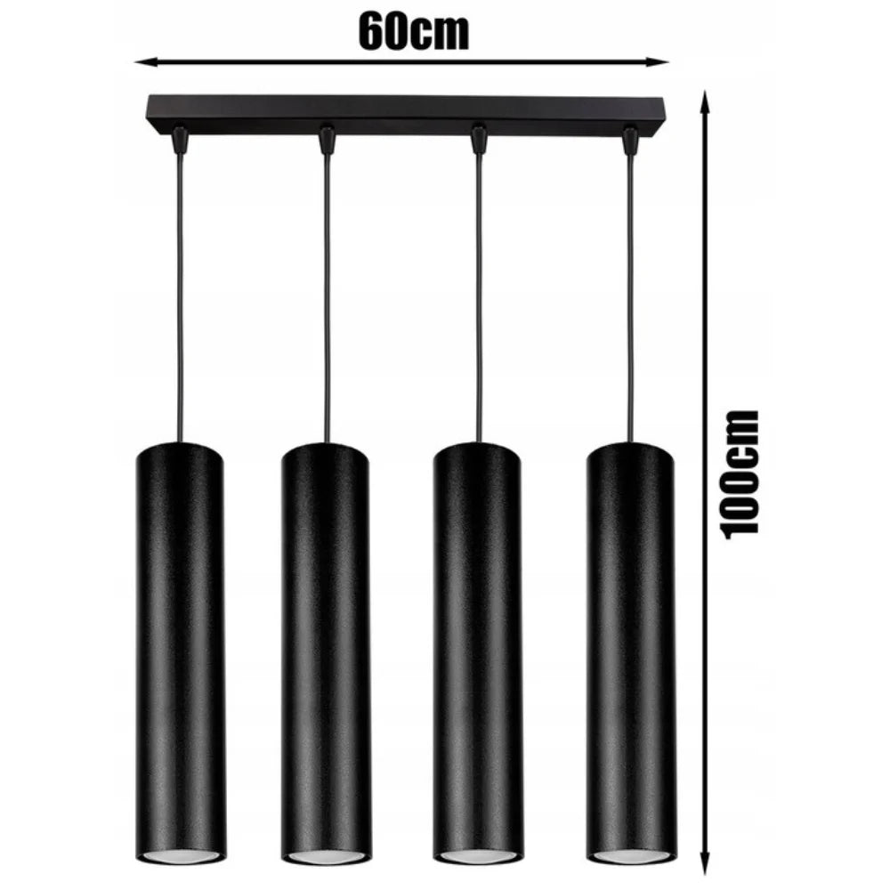 Den sorte industrielle 'Ironglow' pendellampe med 4 lamper har et elegant og robust design, der passer perfekt ind i et industrielt eller moderne rum. Den sorte metalramme understøtter fire åbne lampeskærme, der giver en varm og jævn belysning.