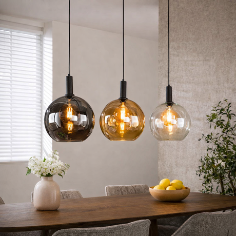 Normalpris Adviesprijs :881,00 kr Salgspris 629,00 krEnhedspris /Ikke tilgængeligStijlvolle Hanglamp met 3 Unieke Glazen Kappen – Amber