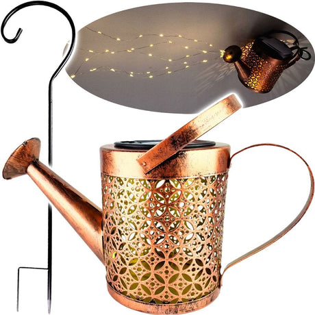 Normalpris 227,00 krEnhedspris /Ikke tilgængeligSolcelledrevet LED-havelampe – vandkandedesign, kobberfarve, IP44, 3000K varm hvid