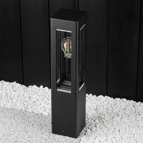 Stående udendørs lanterne 42cm – Sort – E27 fatning – Aluminium & glas – IP44