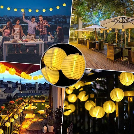 Solcelledrevet havelyskæde – 20 LED-lanterner – 7,59 m – varm hvid 3000K